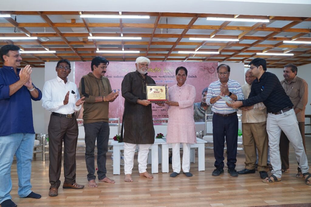 કવિશ્રી સંજુ વાળાને જાણીતા કવિ અને રવિભાણ સંપ્રદાયના કહાનવાડી જગાના ગાદીપતિ શ્રી દલપત પઢિયારના વરદ હસ્તે