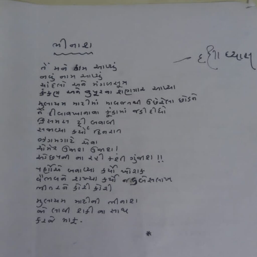 દક્ષાવ્યાસ ના હસ્તાક્ષર મા કાવ્ય ગમ્યું