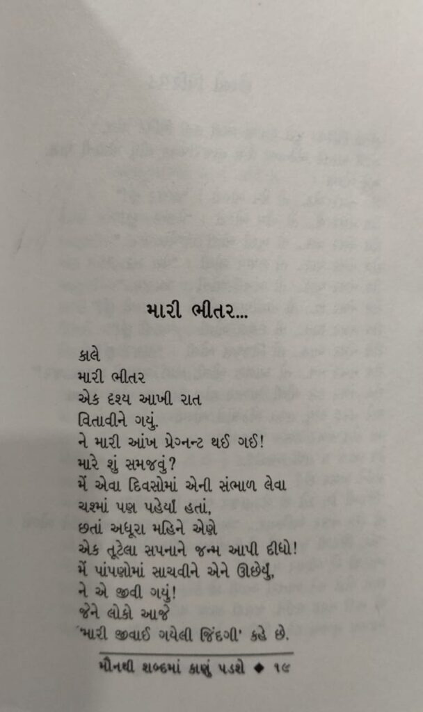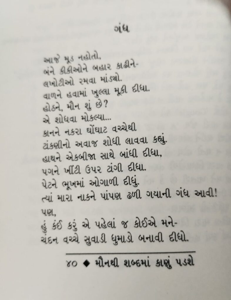 કવિના પોતાનાં નિવેદનથી માંડીને એમની કવિતાઓમાંથી પસાર થતાં, કવિનું વાંચન અને ચિંતન મન પર એક અસર છોડે છે. આજે ચારેબાજુ જ્યારે ‘વિચારવાનું’ શોધવું પડે છે ત્યારે એક વિચારતો અને એને કવિતા સુધી પહોંચાડતો કવિ મળે એ ગમે એવી વાત છે. એ પણ નોંધવું પડે કે અછાંદસનો પ્રભાવ છે પણ ગીત-ગઝલનો અભાવ નથી આ સંગ્રહમાં….
