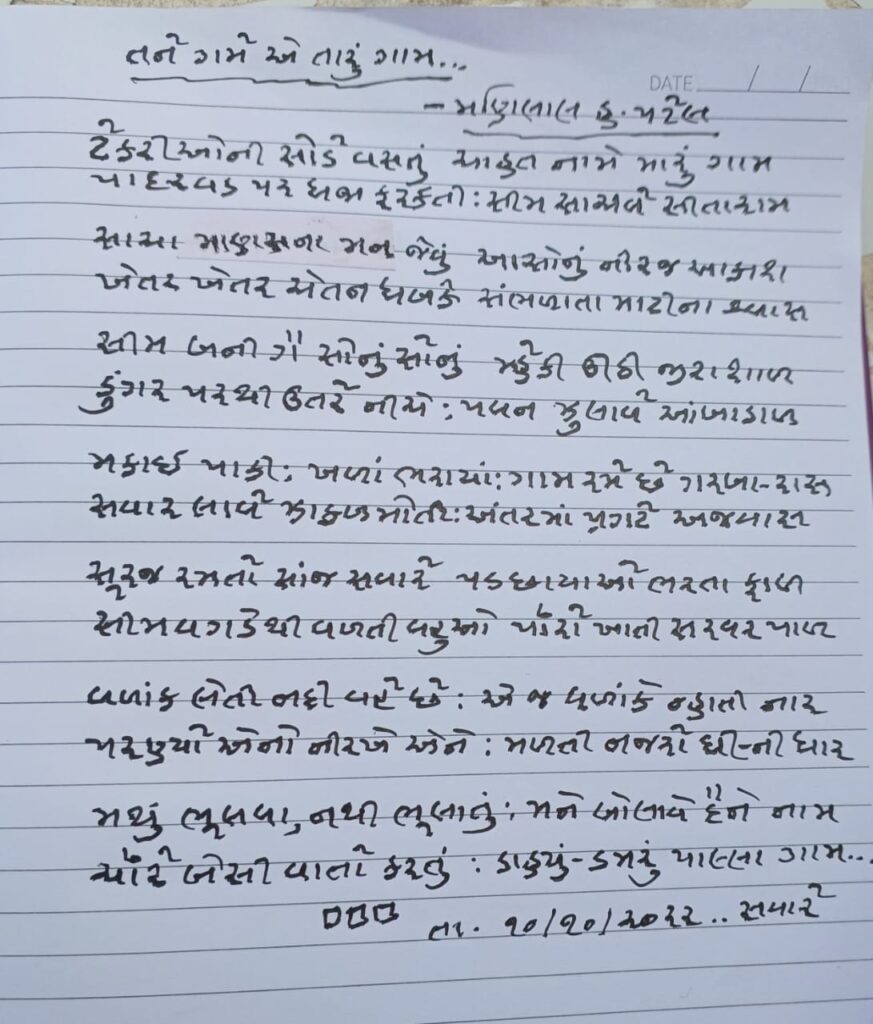 મણિલાલ હ. પટેલના હસ્તાક્ષરમાં કાવ્ય ~ તને ગમે એ તારું ગામ * Manilal H Patel 6 Comments / સંચય / By Kavyavishva