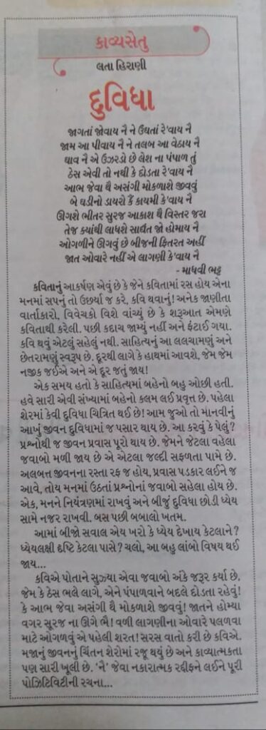 દુવિધા – લતા હિરાણી
