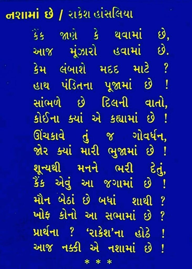 રાકેશ હાંસલિયાની ગઝલોમાં મસ્તી અને મિજાજ છે.