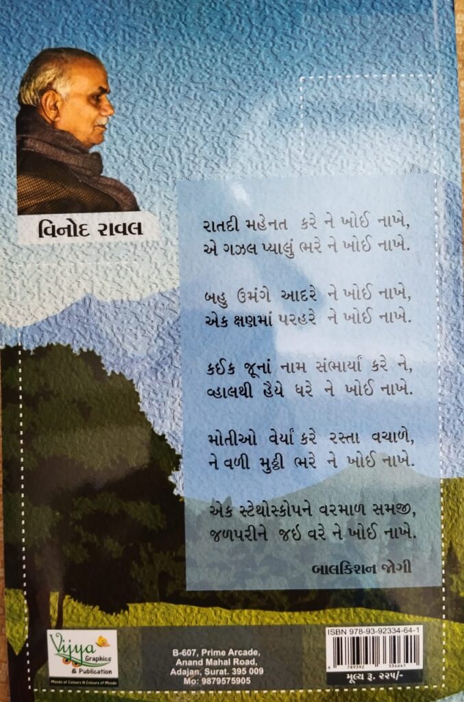 કવિ ભરત વિંઝુડા પુસ્તકનું સ્વાગત કરતાં લખે છે “ડો. વિનોદ રાવલ પોતાના આનંદ માટે લખતા કવિ છે. જાણીતા ગઝલકાર અમૃત ઘાયલના સમય પછી જે છંદમાં બહુ ઝૂઝ ગઝલ લખાઈ છે, એવા ‘ખફીફ’ છંદમાં આ કવિ પાસેથી 24 ગઝલ મળે છે.’ કવિને અભિનંદન.